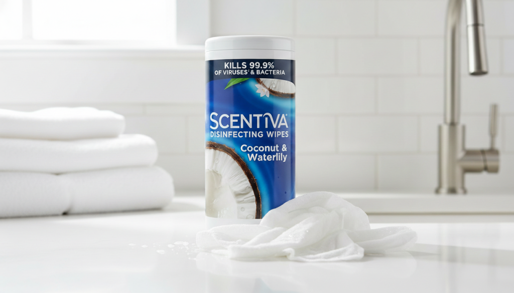 If you want a “clean” smell without that harsh chemical punch, Scentiva is one of the easier-to-live-with options. It’s a solid everyday wipe for kitchens, bathroom counters, and high-touch spots.